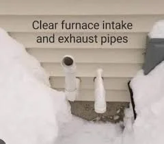 High-efficiency units (90%+ AFUE) use PVC or similar plastic pipes for exhaust—and often a second pipe for intake air. If snow buries or blocks either one: